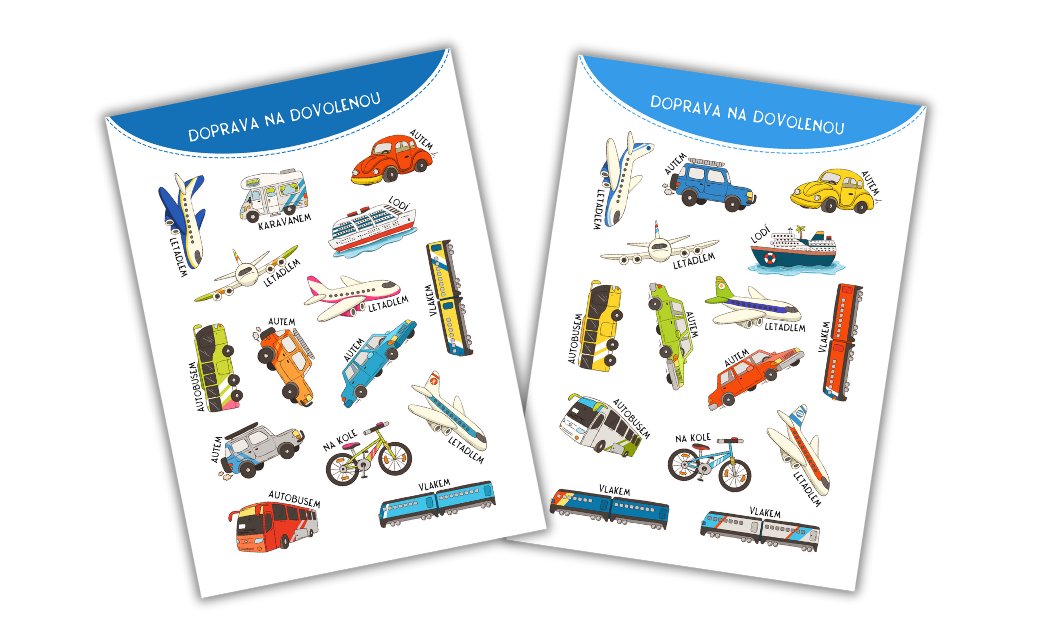 Využijte 30 samolepek 11 druhů) představující dopravní prostředky k zaznamení vlastní cesty/dovolené/jednodenního výletu. Dítě může lepit do vlastního deníčku (prázdninového deníku), ale ideálním doplňkem (není součástí produktu) je dětský cestovní pas. Nabízíme jej ve dvou formátech: