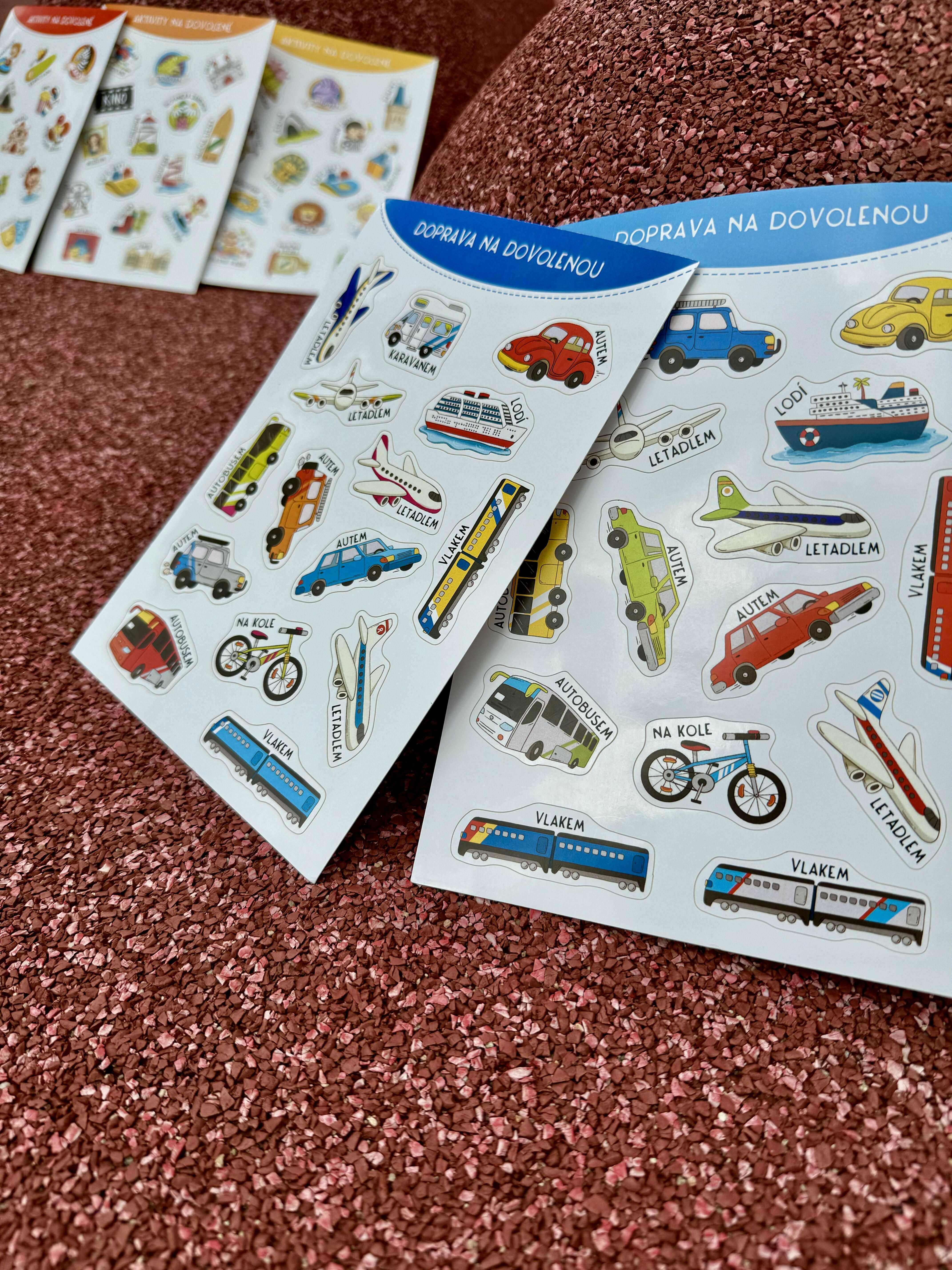 Vzpomínky z cest jsou to jediné, co nám zůstane po návratu domů. Dopřejte dětem možnost si zaznamenat jejich zážitky z cest. K tomu jim poslouží i tyto dva archy 30 samolepek s různými dopravními prostředky (letadlo, auto, vlak...). Skvěle se kombinuje s dětským cestovním pasem (ten není součástí) a dalšími samostatnými cestovními samolepkami (lze dokoupit).