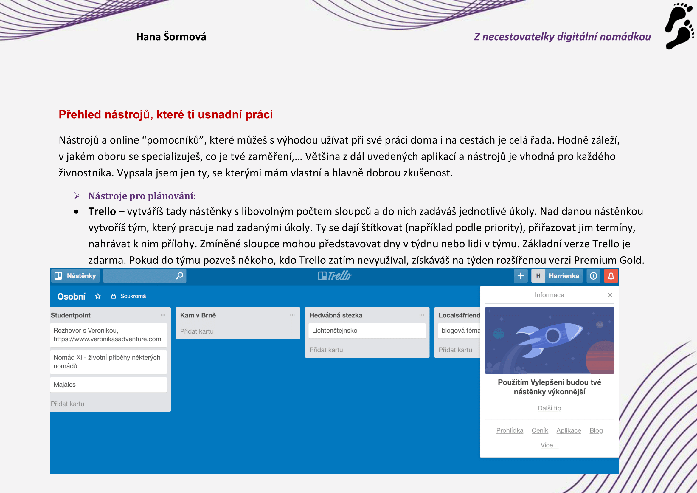 Součástí e-Booku jsou i dva bonusy, aby váš vstup na dráhu digitálního nomáda byl ještě snazší. Automaticky s e-Bookem po zaplacení objednávky přijdou ještě dva PDF dokumenty: