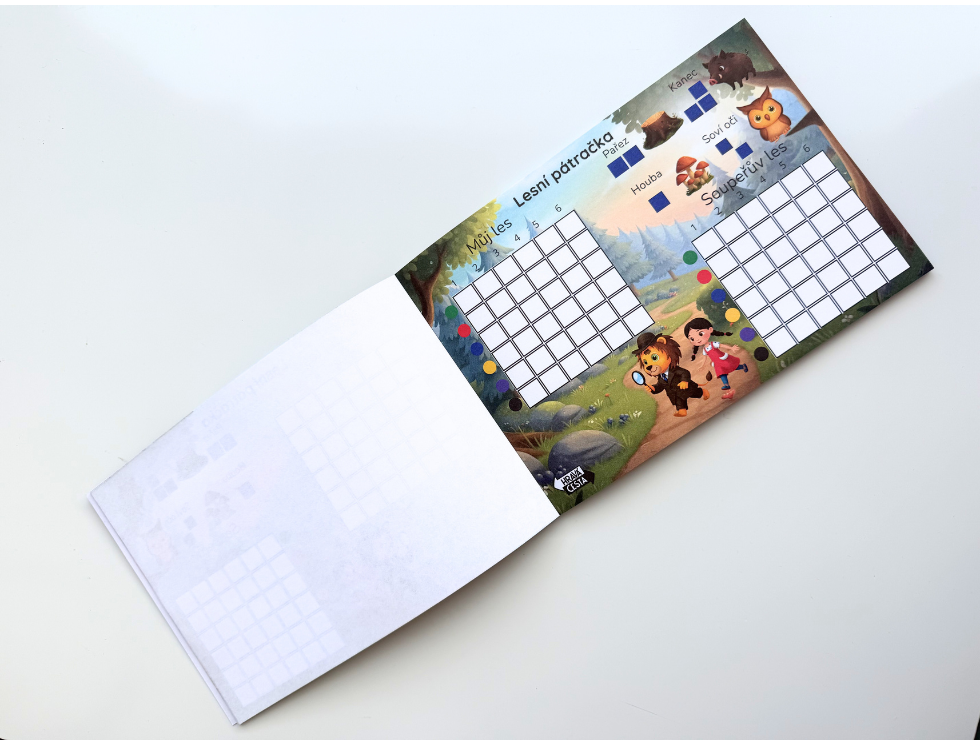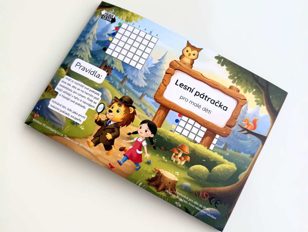 Hra Lesní pátračka má snadná pravidla. V jedné čtvercové síti si ukryjete své předměty (pařezp, kance, houbu a soví oči). V druhé čtvercové síti tyto předměty hledáte u protihráče. Děti se ptají na jednotlivá pole pomocí čísla a barvy. Dozvídají se, zda se jim povedl zásah, anebo ne. Vyhrává ten, kdo první najdete předměty protihráče.