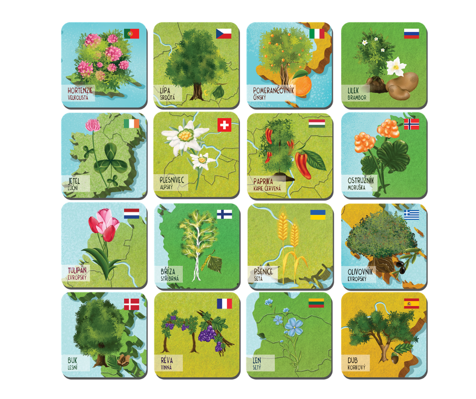 V jedné sadě je 16 magnetek - rostliny v této sadě: