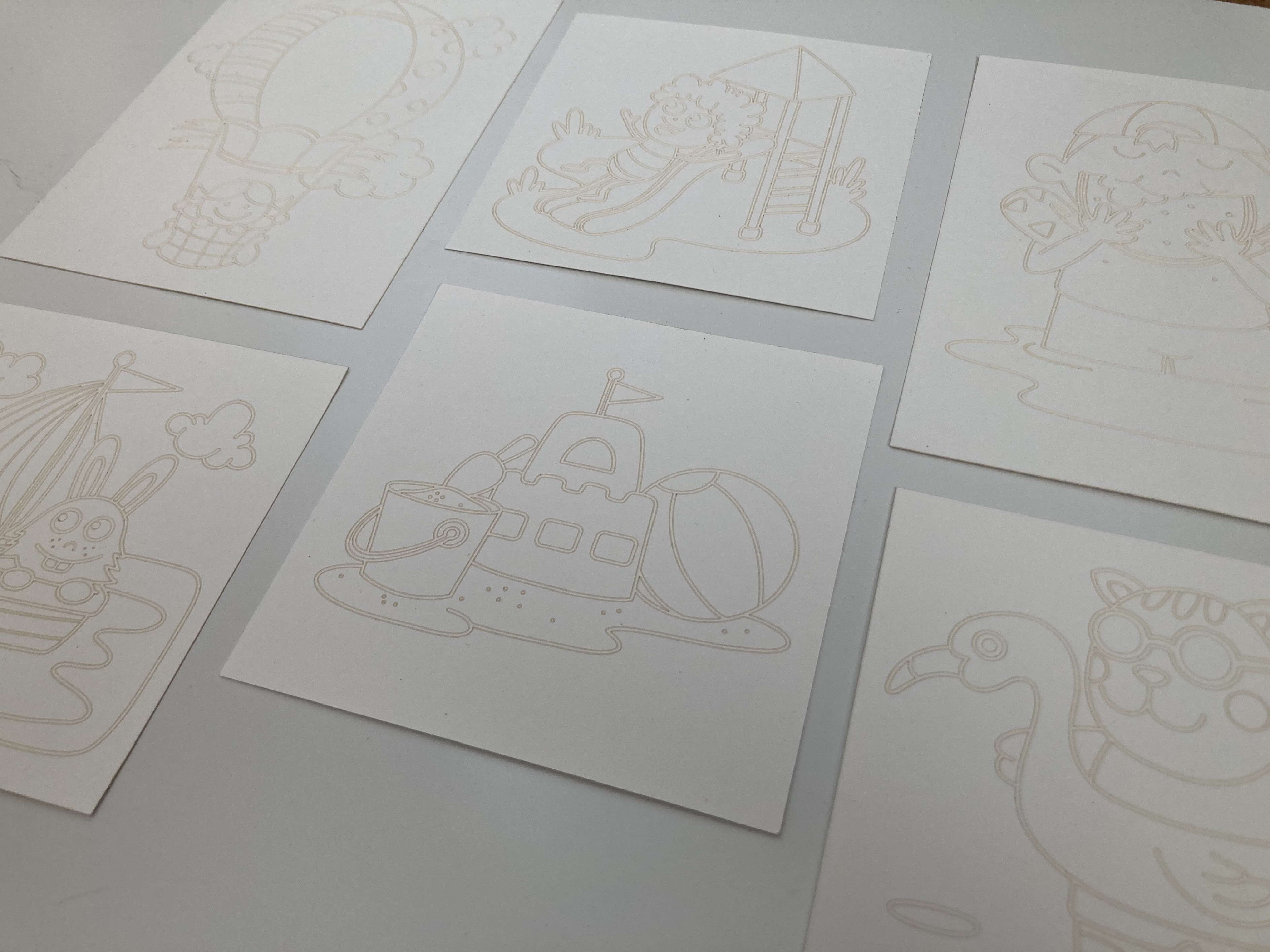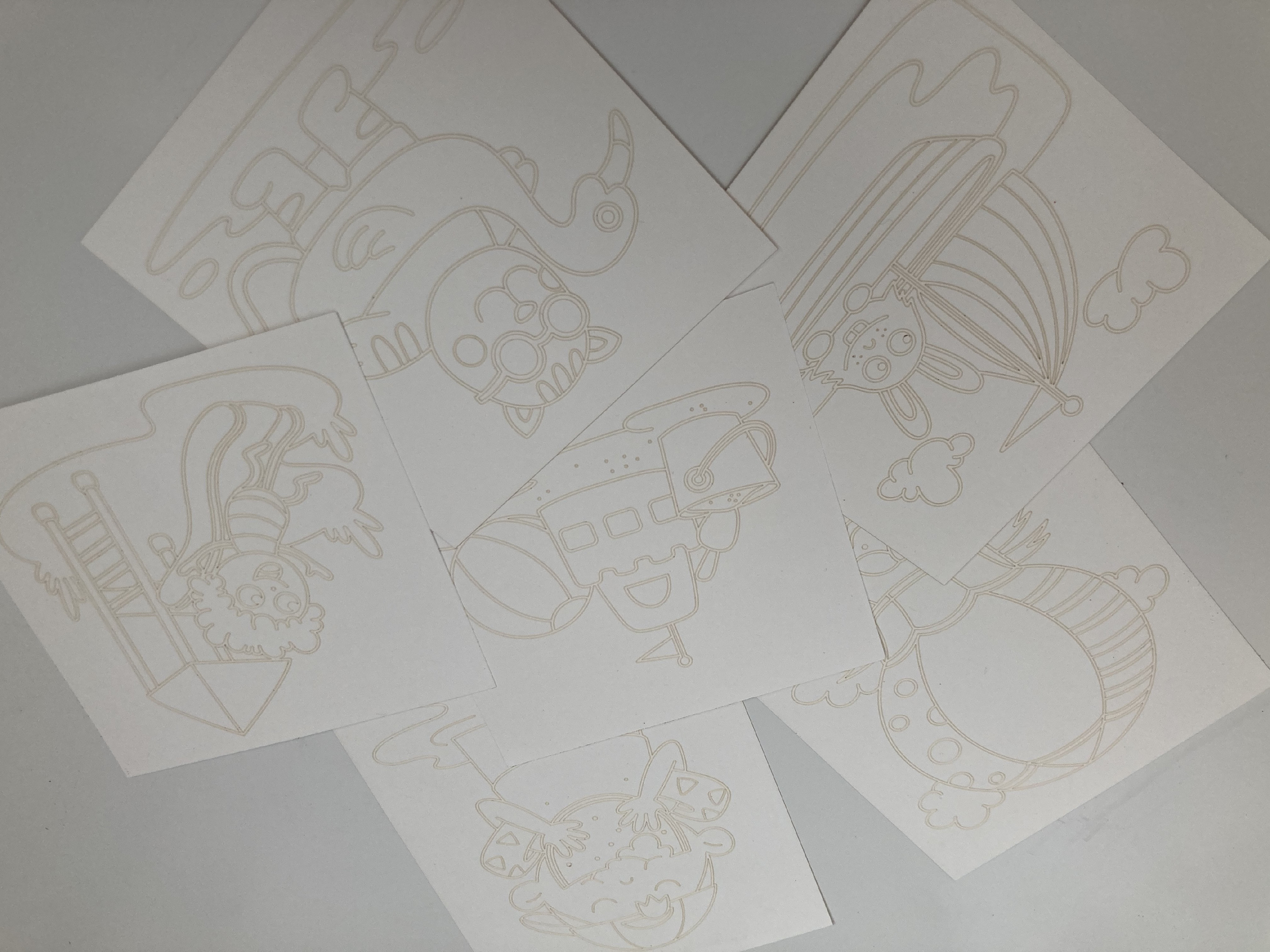 Samolepky (obrázky) jsou vyřezávány technologií, kdy i ten nejjemnější detail lze odlepit od šablonky bez potrhání dalších částí samolepek. S obrázky se tak snadno manipuluje i malým dětem od cca 3 let.