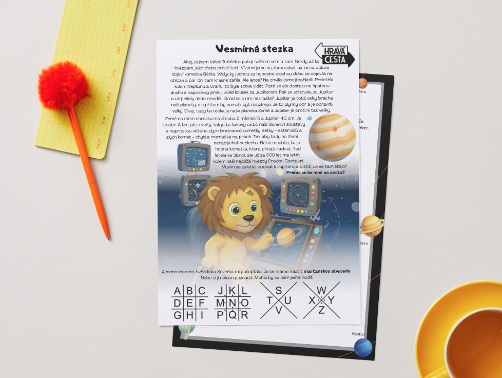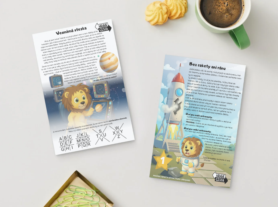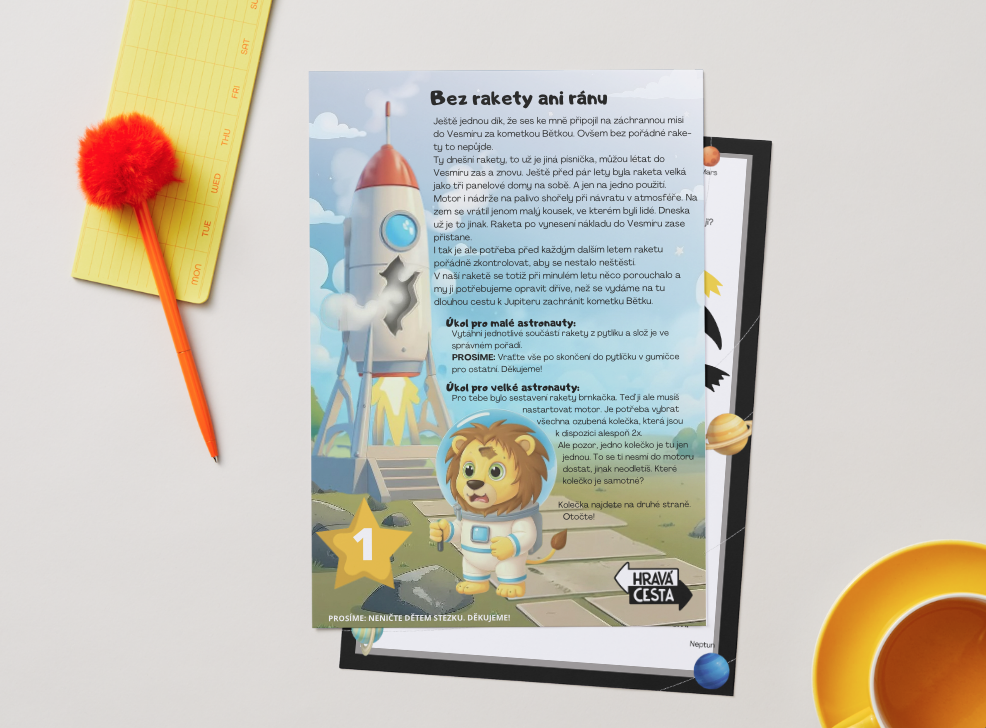 Lvíček Tuláček se těší, až na obloze zahlédne oblíbenou kometku Bětku. Ale naposled ji viděl kdesi matně za Jupiterem, a pak se mu ztratila z dohledu. Co když se jí něco stalo? Vydáte se s ním ji zachránit? Pojďte s Tuláčkem nasednout do rakety a objevit krásy a nástrahy Vesmíru. Na děti čeká dopis na startu, 6 stanovišť s příběhem a úkoly. A závěrečný interaktivní úkol s hledáním nesmyslů. Přidáte se?