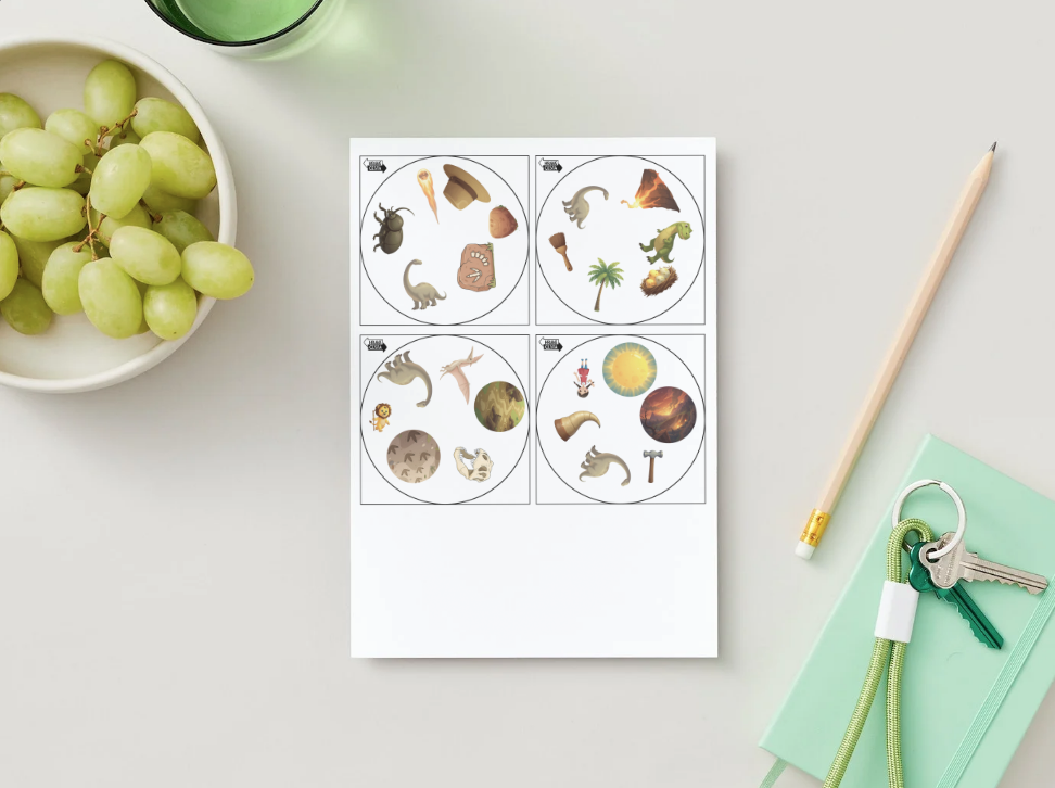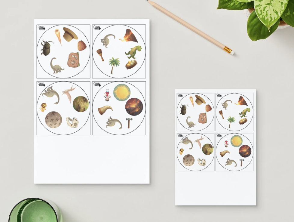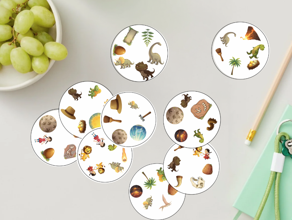 Toto dinosauří dobble je ve formátu PDF (tj. vytiskněte a nachystáte sami). Celá velká sada vám přijde na e-mail uvedený v objednávce obratem po uhrazení.