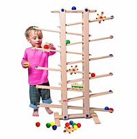 Abychom byli konkrétní, uvedeme příklad. Tak například za velice oblíbenou Kuličkovou dráhu MAXI vám dokážeme vrátit až 600 Kč (tj. téměř polovinu běžné nákupní ceny na trhu), pokud máte originální krabici a hračka není potlučená. Podobně to bude i u dalších dřevěných hraček, jakými jsou duhy Targe, kolotočky a různé stavebnice. |